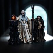Saruman e Grima em Isengard, em miniaturas do Middle Earth Strategy Battle Game.